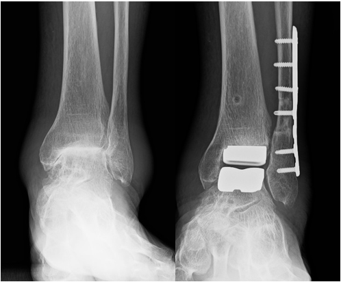 人工足関節置換術は、足関節を人工のインプラントに置換術手術法です。近年、本邦でも適応がひろがっています。